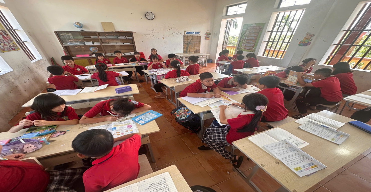 Dạy học theo nhóm là một trong những hình thức tổ chức dạy học tích cực đang được giáo viên nhà trường triển khai hiệu quả trong các giờ học. Thông qua hoạt động làm việc nhóm, học sinh có cơ hội trao đổi ý kiến, chia sẻ cách hiểu và cùng nhau giải quyết nhiệm vụ học tập, từ đó giúp các em nắm kiến thức sâu hơn và bền vững hơn. Hình thức này tạo môi trường học tập thân thiện, khuyến khích học sinh mạnh dạn trình bày suy nghĩ, rèn luyện kỹ năng giao tiếp, hợp tác và lắng nghe. Đặc biệt, dạy học theo nhóm giúp phát huy tính chủ động, sáng tạo của từng học sinh, đồng thời giáo viên dễ dàng quan sát, hỗ trợ kịp thời các đối tượng khác nhau trong lớp. Qua đó, chất lượng giờ học được nâng cao, học sinh hứng thú hơn với việc học và từng bước hình thành các năng lực cần thiết theo yêu cầu của Chương trình Giáo dục phổ thông 2018.